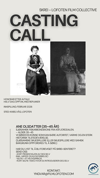 Vi skal produsere flere historiske minifilmer for det fantastiske nye SKREI-senteret, som åpner sommeren 2026 i Kabelvåg.Filmene blir en del av en spesialutviklet installasjon hvor publikum kan interagere med historiske karakterer – og du kan bli en av dem.